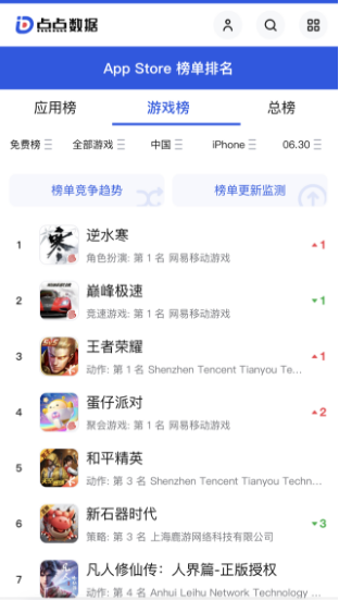 一点数据监测的营收口径是App Store的店内购买净收入(IAP),不包括第三方和广告收入,扣除平台分成。以上收入数据不包括大陆安卓。