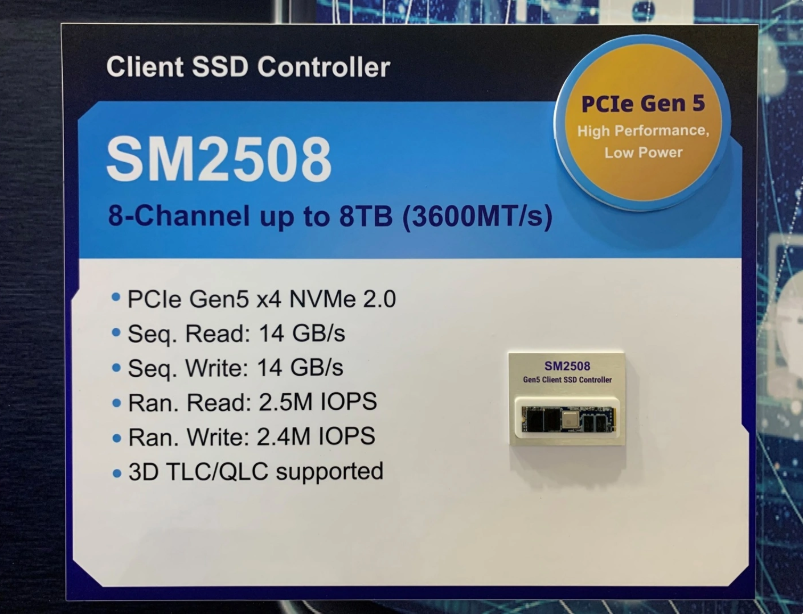 容晖科技表示,即将推出的SM2508是一款PCIe Gen5 x4 NVMe 2.0 SSD控制芯片,具有优化的性能和功耗。适用于笔记本电脑、台式电脑和工作站,支持8个NAND通道,每个通道的速度高达3600 mt/s,提供最高14GB/s的顺序读写速度和250万IOPS的随机读写速度。容晖表示,SM2508凭借0 ~3.5W的超低功耗,释放了PCIe Gen5性能的极致潜力,适用于更广泛的笔记本电脑应用。