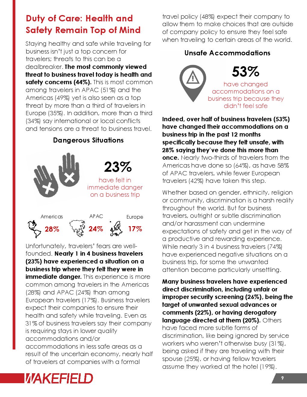 53%的人在过去12个月的商务旅行中更换了住宿,尤其是因为他们觉得不安全。