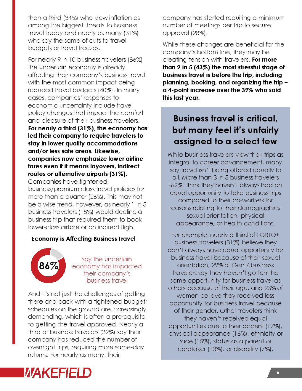 86%的人表示不确定的经济形势影响了他们公司的商务旅行。