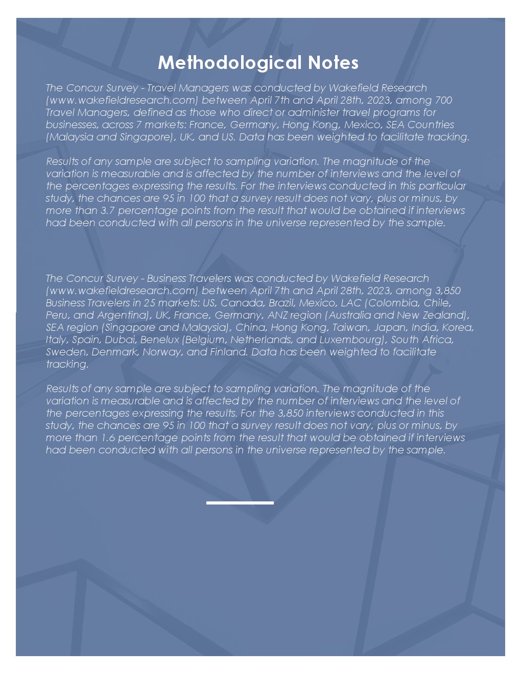 SAP Concur与Wakefield Research合作,对全球25个市场的3850名商务旅行人士进行了调查,旨在深入了解商务旅行的现状和未来一年的发展趋势。
