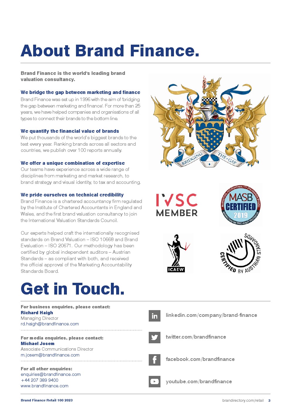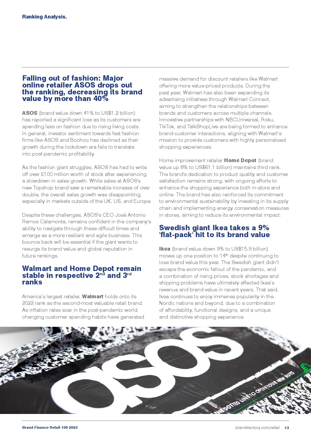 由于生活成本上升,消费者在时尚上的支出减少,ASOS(品牌价值下降41%,达到12亿美元)遭受了重大损失。