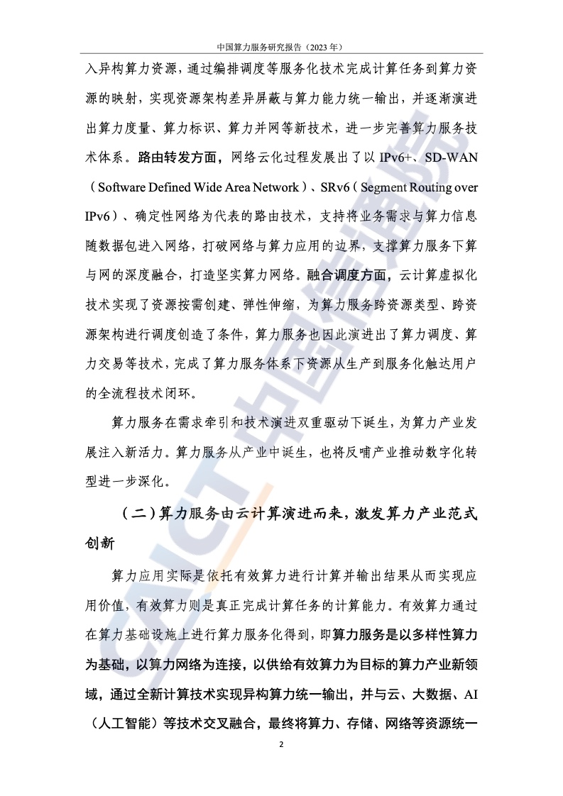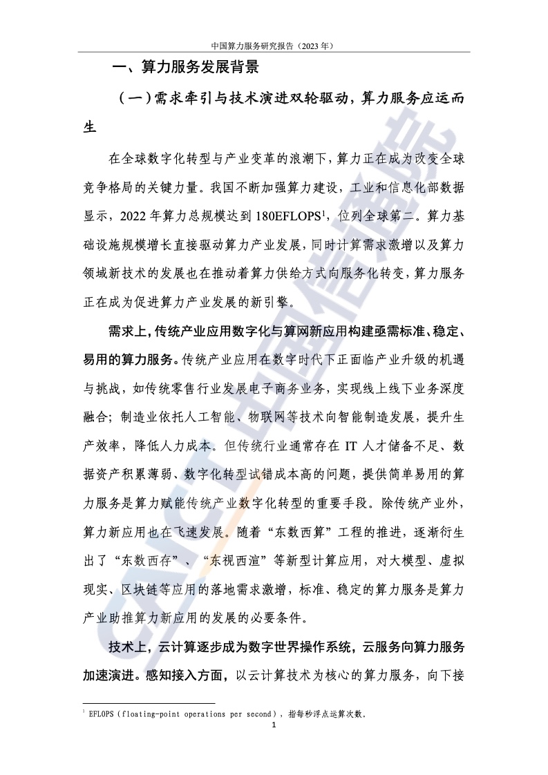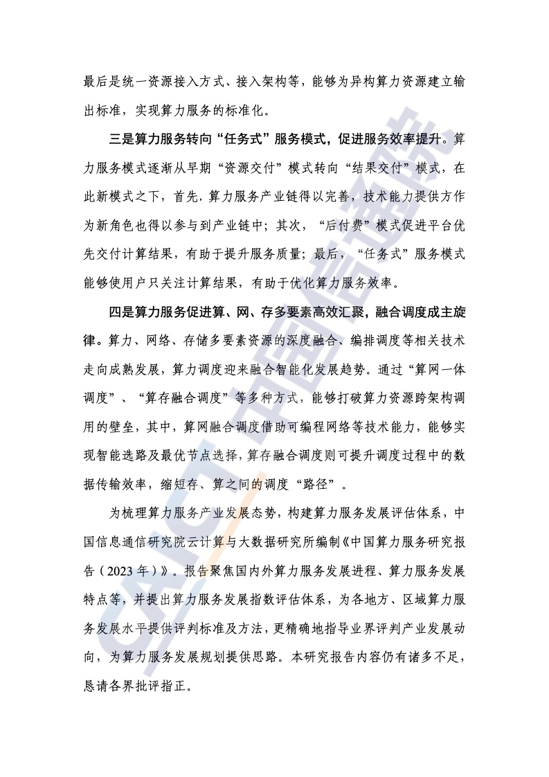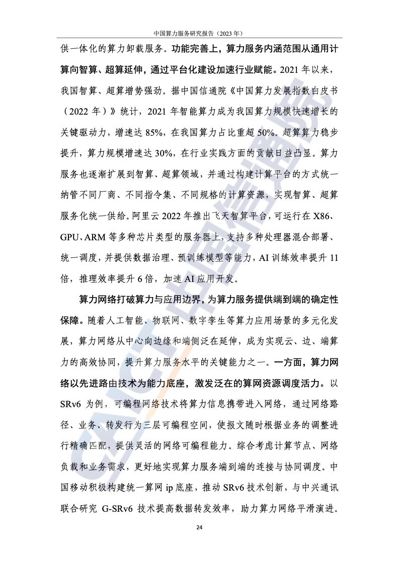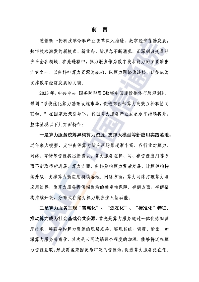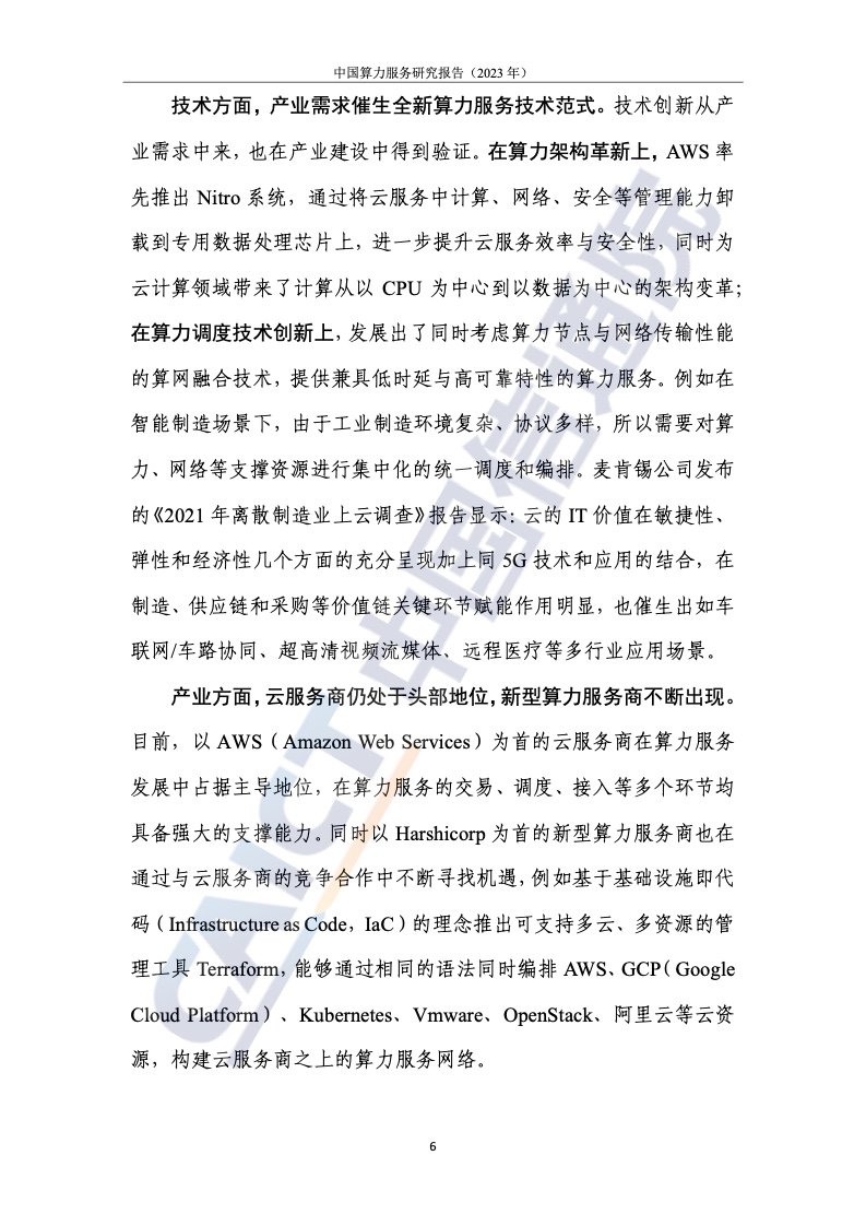 1.需求牵引和技术进化由两个轮子驱动。以“基于任务”的服务为核心的计算服务由云服务演化而来,呈现出通用化、普适化和标准化的特点。在需求端,传统行业需要标准、稳定、易用的计算服务来构建数字化应用和计算网络的新应用;技术上,云计算逐渐成为数字世界的操作系统,云服务加速向计算服务演进。报告指出,计算服务以“基于任务”的交付为核心,通过云计算相关技术屏蔽硬件架构之间的差异,完成多样化计算资源的统一管理和调用,实现计算能力的通用化;云网边缘到边缘的融合程度加深,使得分布在云端、边缘、末端的泛在资源互联互通,形成多因子协同联动、集成调用的局面,助力计算力的泛在;云作为计算力资源的载体,推动资源供给模式向智能化演进,通过统一的资源接口和服务平台,实现计算力输出的标准化。