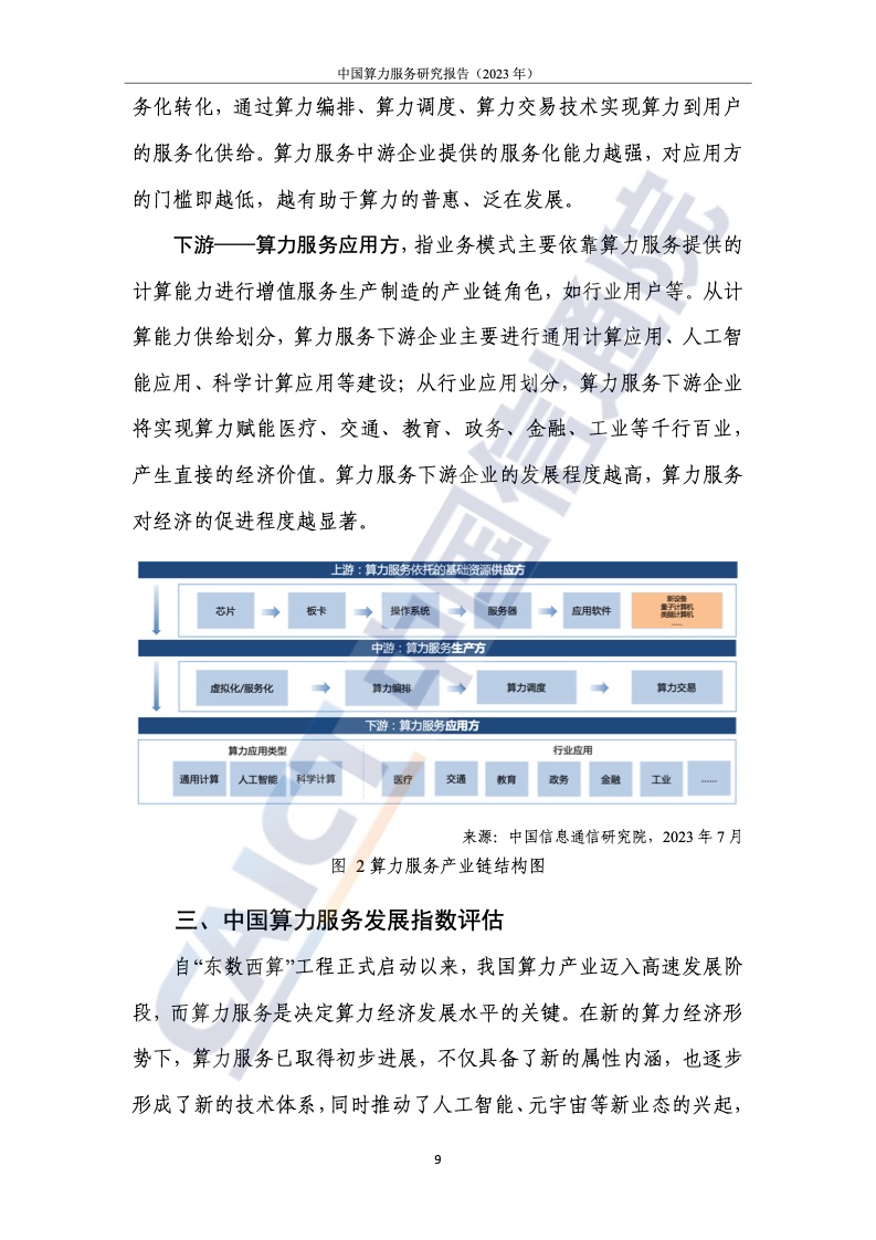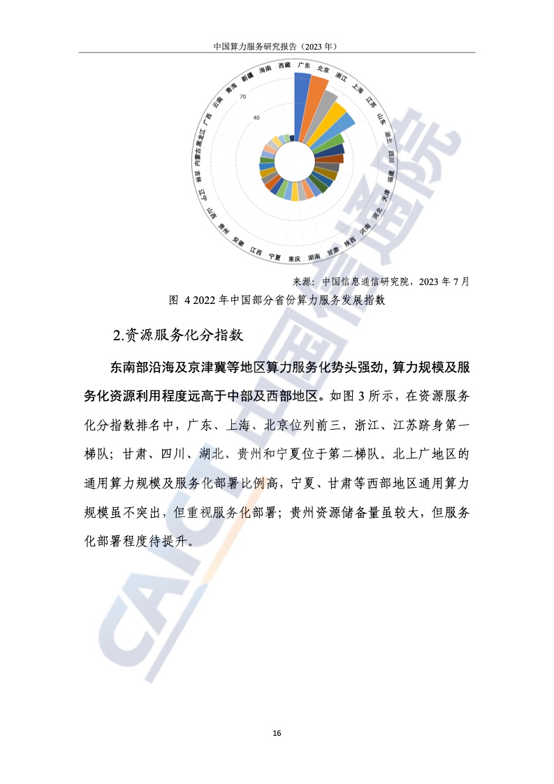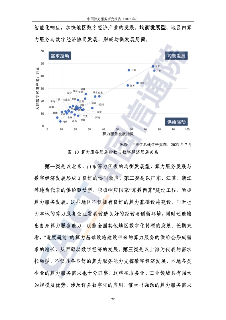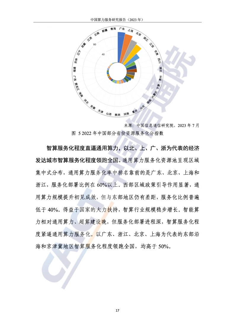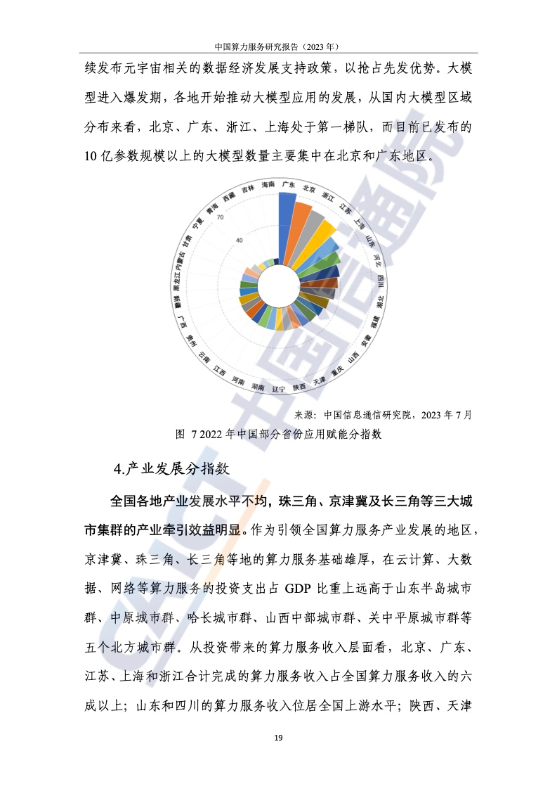 2.北上广计算服务指数处于领先地位,中西部地区提升明显,但差距较大。为了客观、全面地衡量我国各省计算力的服务水平和产业赋能水平,报告提出了计算力服务发展的指标体系,从资源的服务水平、应用赋能水平和服务体验水平三个维度进行研究。整体来看,我国珠三角、长三角、京津冀等区域计算服务处于领先地位。与东部相比,西部地区土地、能源等资源丰富,发展潜力巨大。例如,四川凭借区位优势已晋升至第八位,但西部整体计算服务水平仍有待提高。