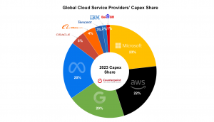 预计到2023年,云计算总资本支出的约35%将用于IT基础设施,包括服务器和网络设备,而2022年为32%。