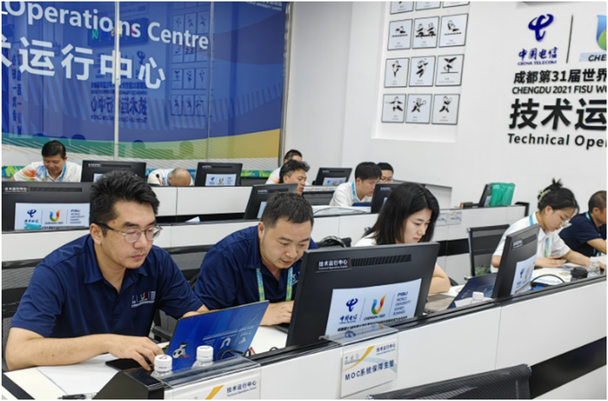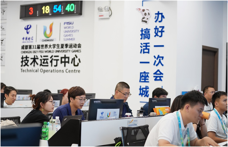 成都大运会,各国大学生运动员突破自我,展现风采;赛场外,中国电信各个服务团队的成员忙碌而紧张,时刻关注着各个系统、平台、网络的运行情况。自2019年12月18日起,中国电信成为成都大运会综合信息类独家官方合作伙伴。1000多人日夜坚持,电信人全力以赴,打造“智慧大运”。