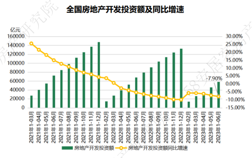 总结:2023年1-6月,全国房地产开发和住宅开发投资分别为58550亿元和44439亿元,同比分别下降7.9%和7.3%。发展投资数据已连续4个月扩张。