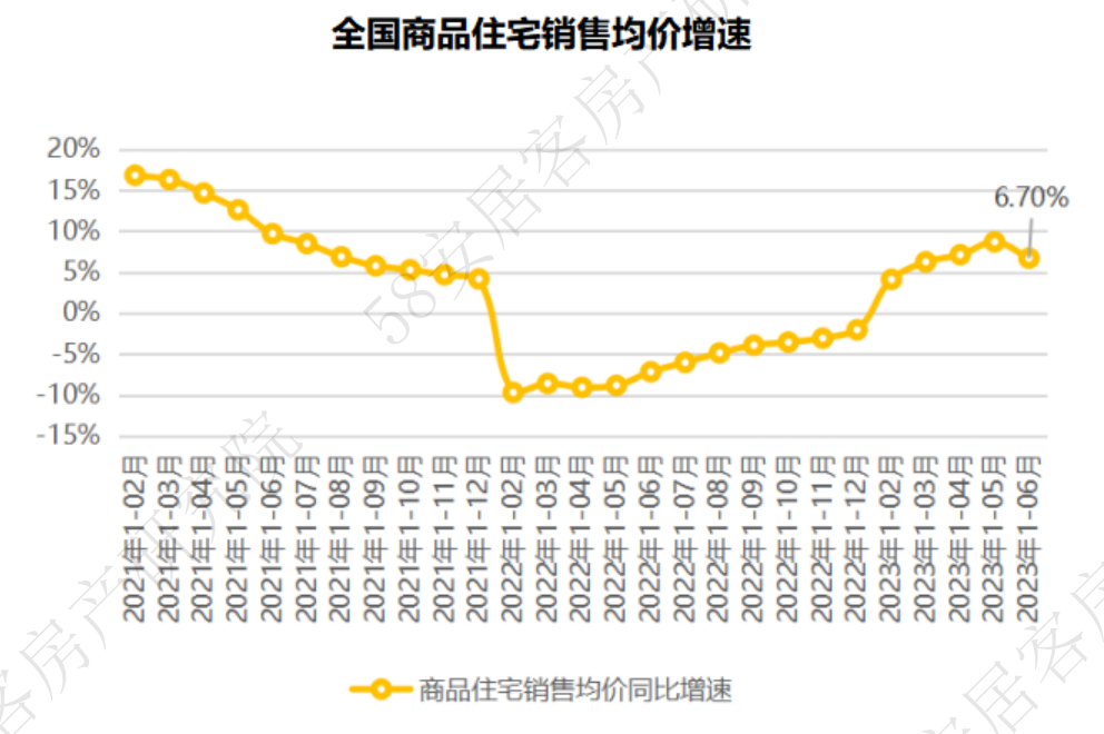 从1-6月销售金额和销售面积看,全国商品房均价10978元/平方米,上涨6.7%,涨幅比上月回落2个百分点。