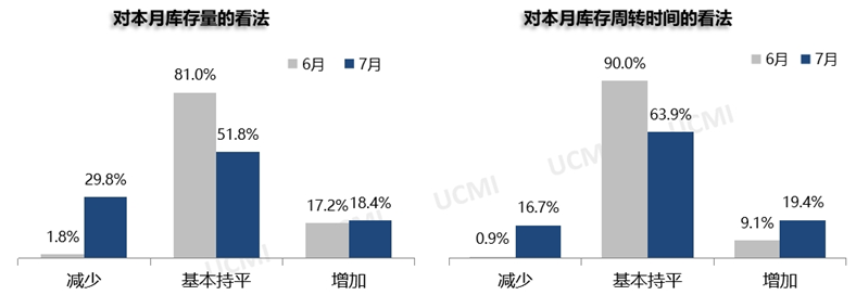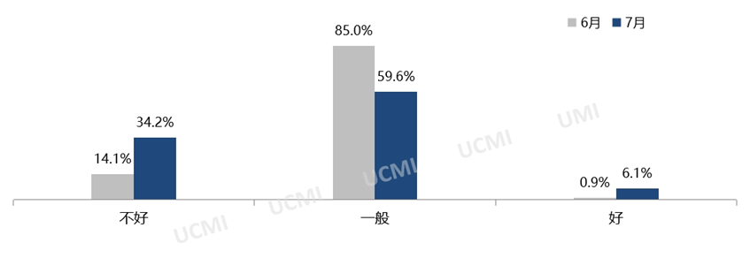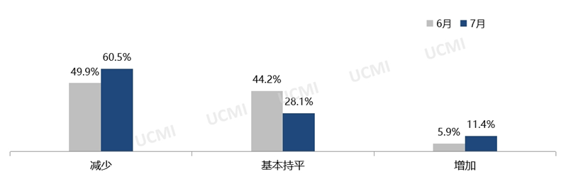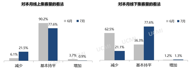 调查显示,7月份线上线下客户收款均有所减少,认为线上客户收款“减少”的经销商比例为21.5%。认为线下客户数量“减少”的经销商比例为21.1%。