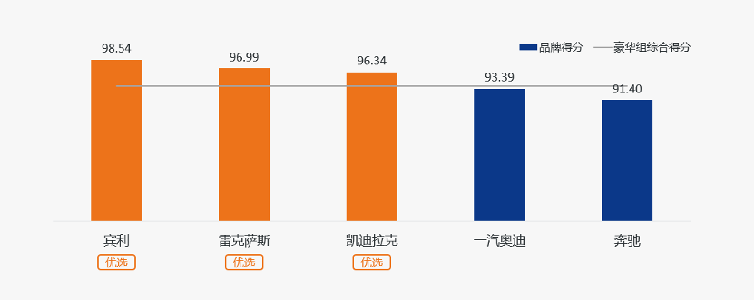豪华组中,宾利、雷克萨斯、凯迪拉克入选;合资组中,北京现代入选;在独立组,比亚迪入选。