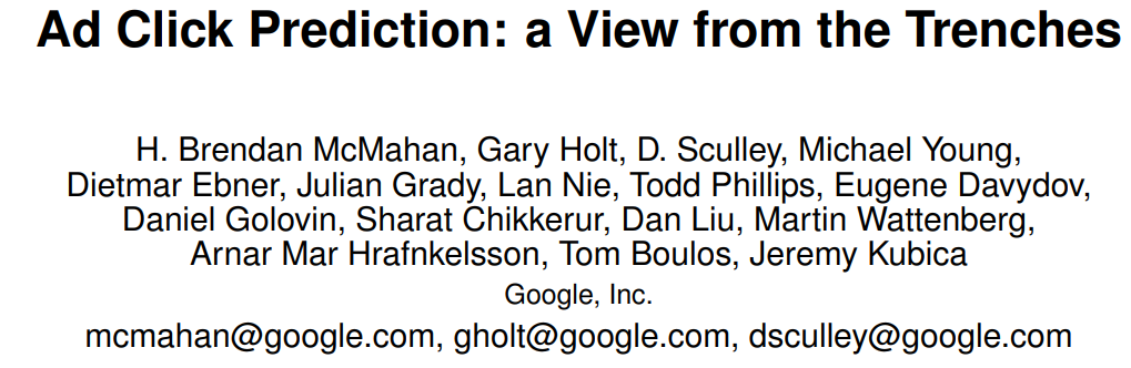 论文简介:预测广告的点击率(CTR)是一个与数十亿美元的网络广告行业密切相关的大规模学习问题。本文介绍了在已部署的CTR预测系统环境中的一些精选案例研究和主题,这些案例研究和主题来自最近的实验。