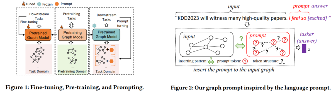 图1示出了微调、预训练和提示的过程;图2是受NLP字段中的提示启发的图形提示: