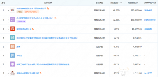 2022年12月28日,萤石网在上交所上市。海康威视现为萤石网络第一大股东,持股比例高达48%。