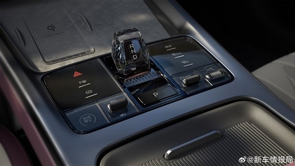 另外,车内中控面板的布局也有所改进,有点阴影,而不是现款海豹EV所拥有的接口。中控面板下面有一个手机无线充电面板,但是好像只有一个电子变速杆。和海豹EV一样,水晶材质,体积非常小。