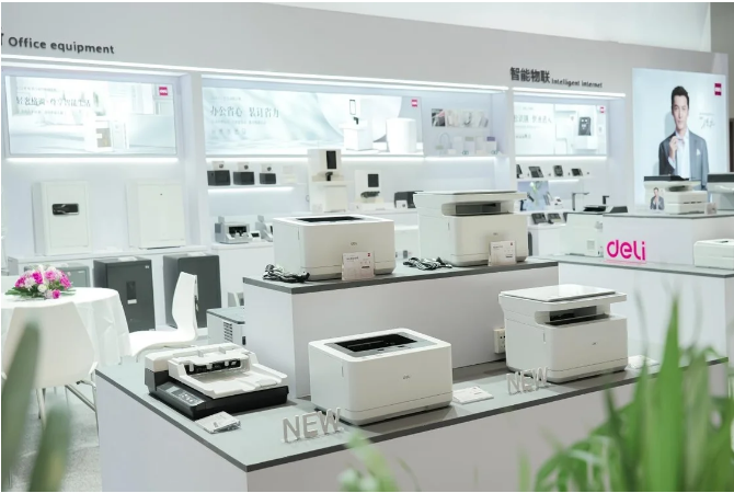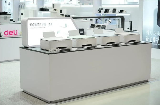 在2F-A13得力展区,得力打印机全产品阵容集体展出,为参观者带来了更全面、更简单、更便捷的打印体验,展示了其作为国内首家同时掌握激光和喷墨核心技术的企业,以及唯一一家具备激光、喷墨、热敏打印机、针式打印机等各类打印机设备R&D和制造能力的企业的实力。特别是Deli打印机领域的重要成果——Deli彩色打印机最新发布。借助“自研自制彩色打印喷头”、“创新分体式墨盒设计”、三重防堵技术、智能云打印等多项智能功能,满足了办公和家庭用户在不同场景下的多种使用需求,在本次展会上收获超高人气。