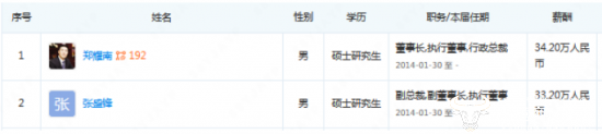 因为他刚来公司,公司还没有公开他的工资信息,运营商的财务网络也是未知。但据企业调查,董事长郑耀南薪酬为34.2万元,副董事长、副总裁张胜峰薪酬为33.2万元。我想知道蔡会得到多少钱。