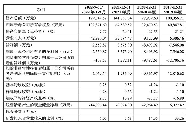 中兴新材料是一家新能源公司。招股书显示,公司近年来业绩快速增长,2019年营收6306万元,2021年营收3.26亿元,2022年前9个月营收4.3亿元。2021年,中兴新材在高速增长的同时扭亏为盈,净利润3576万元。