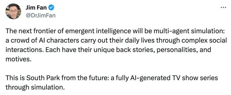 对此,英伟达首席AI科学家Jim Fan还兴奋地断言,“多智能体模拟,将是新兴智能的下一个前沿。”