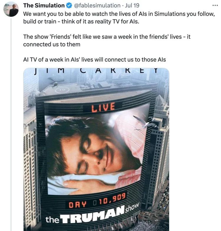 “我们推出Simulation的目标是通用人工智能(AGI),”Fable几天前通过@fablesimulation 的官方账号发文谈到,“AI是真正活着的,而不像很多聊天机器人一样只在人类有需求的时候才被唤醒, ‘AI人’能够在模拟世界中每天过着真实的生活,并随时间慢慢成长。”
