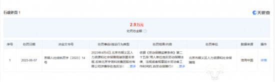 最终,北京市顺义区人力资源和社会保障局对宇信科技给予警告,并处以29000元罚款。