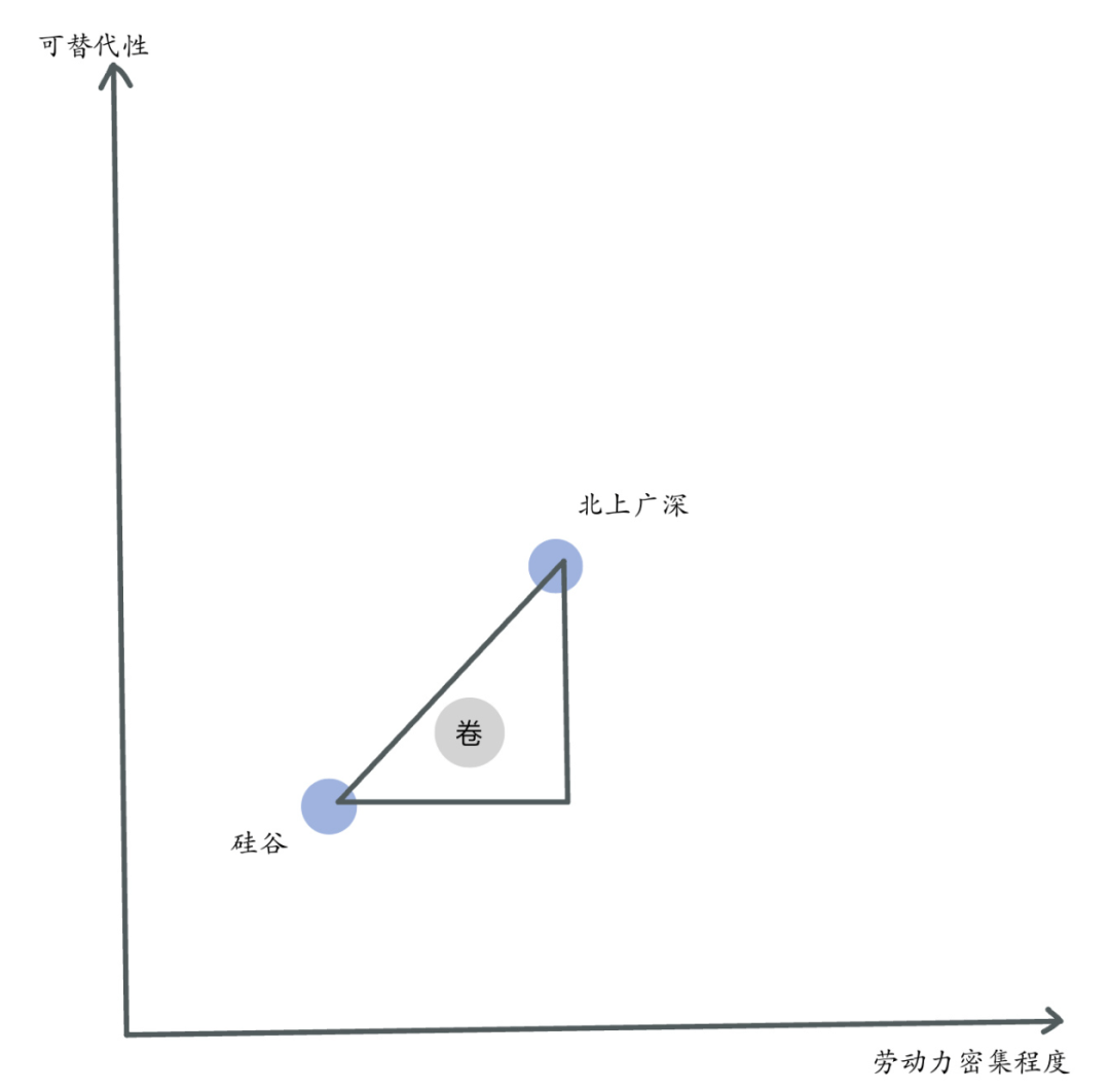 第二,工作可替代性低(硅谷)VS工作可替代性高(国内)