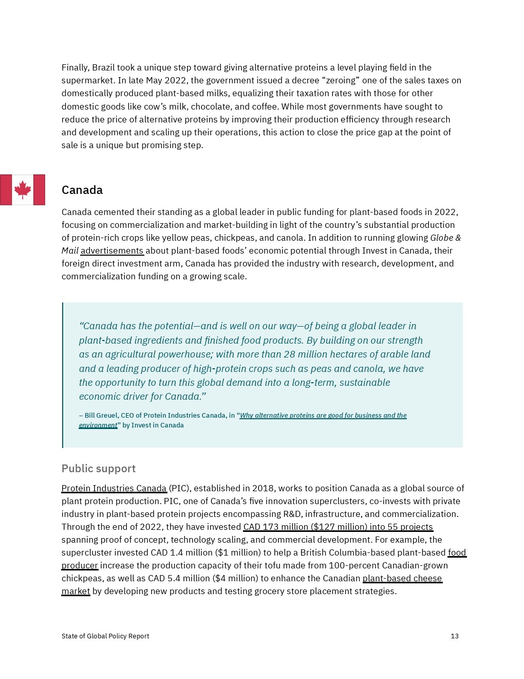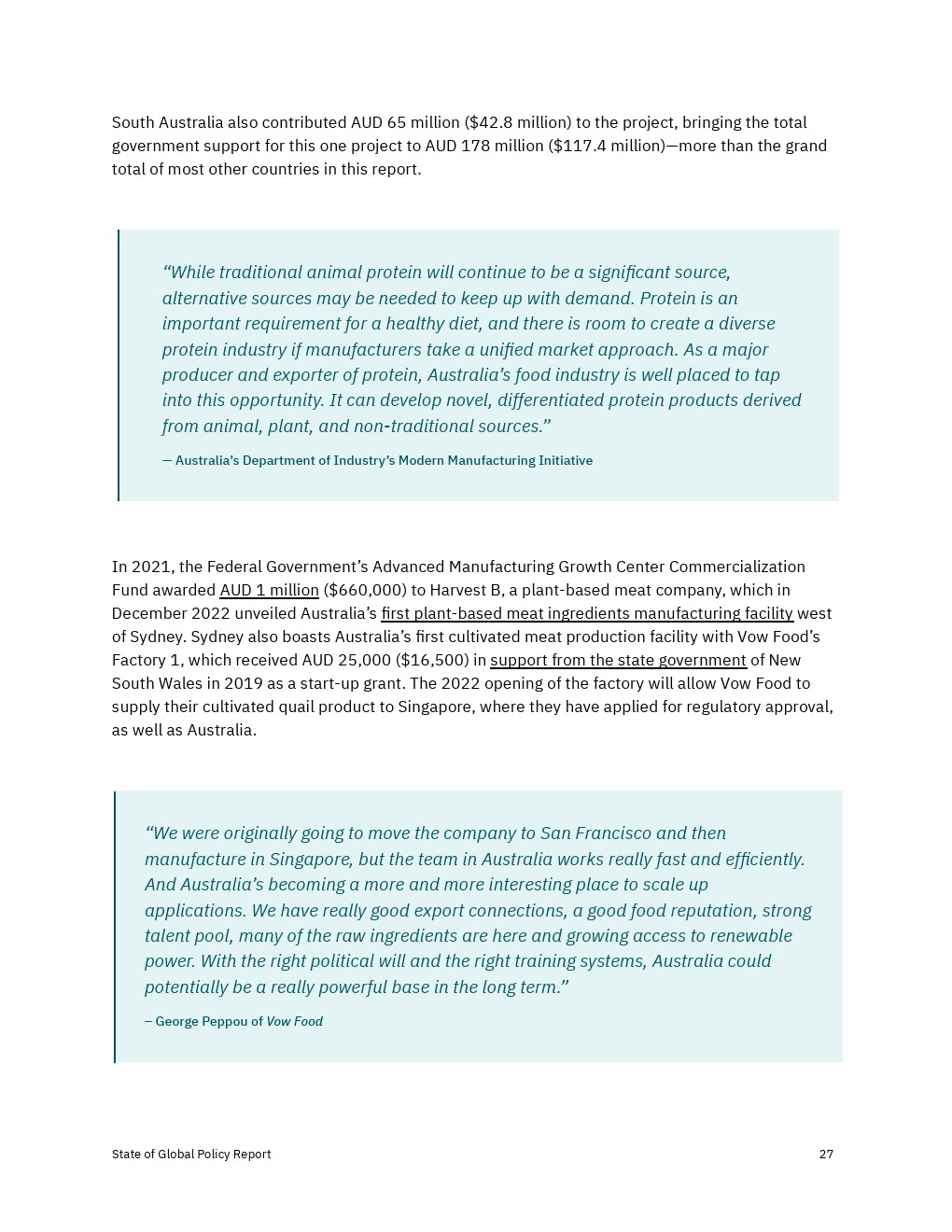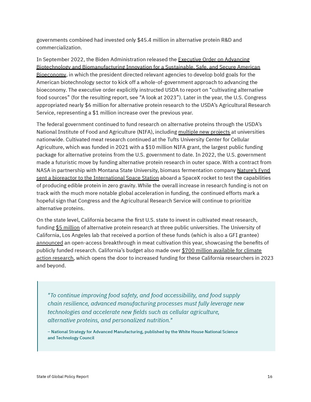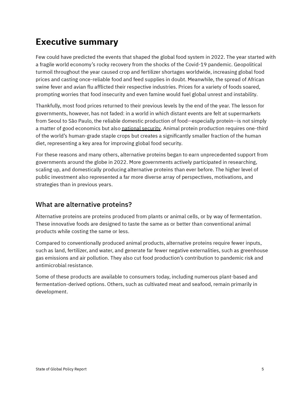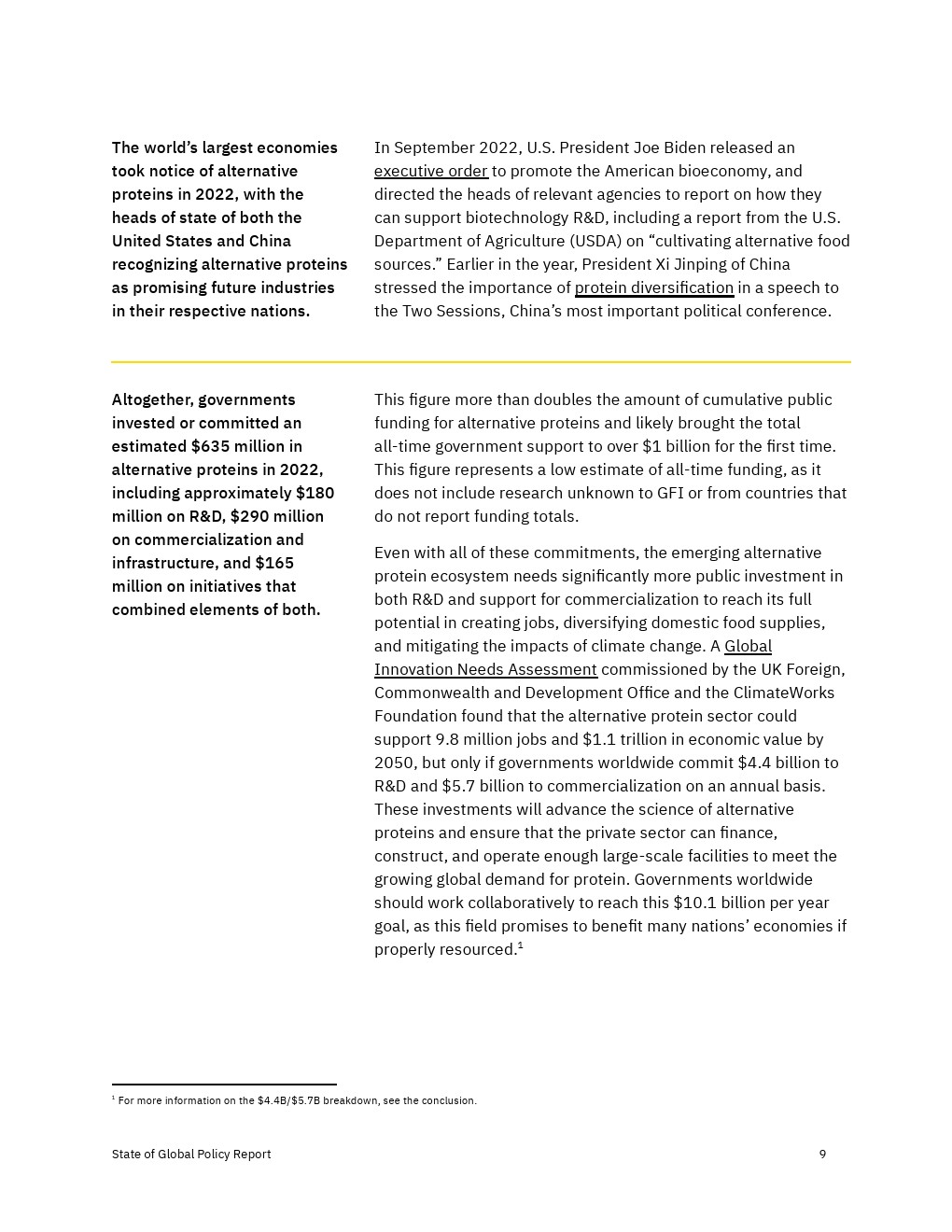 各国政府加大了对2022年替代蛋白质的财政、政治和监管支持,但还没有达到实现替代蛋白质对经济、气候和全球粮食系统的益处所需的水平。决策者应考虑增加对R&D和产品商业化的资助,以及监控工具,以确保蛋白质安全、公平和可靠地进入市场。