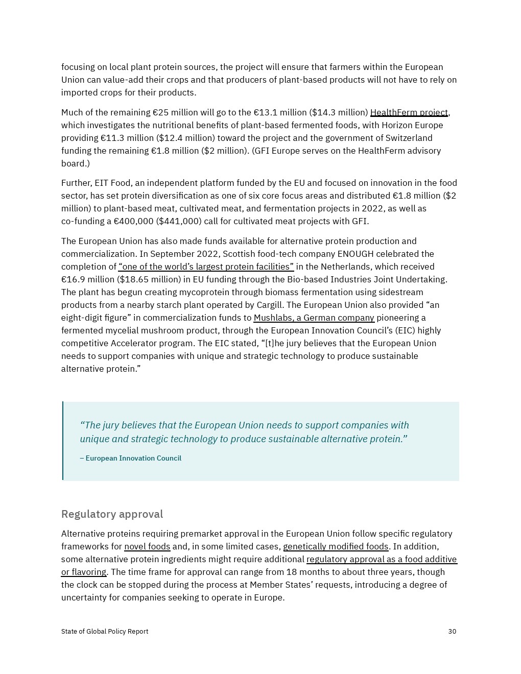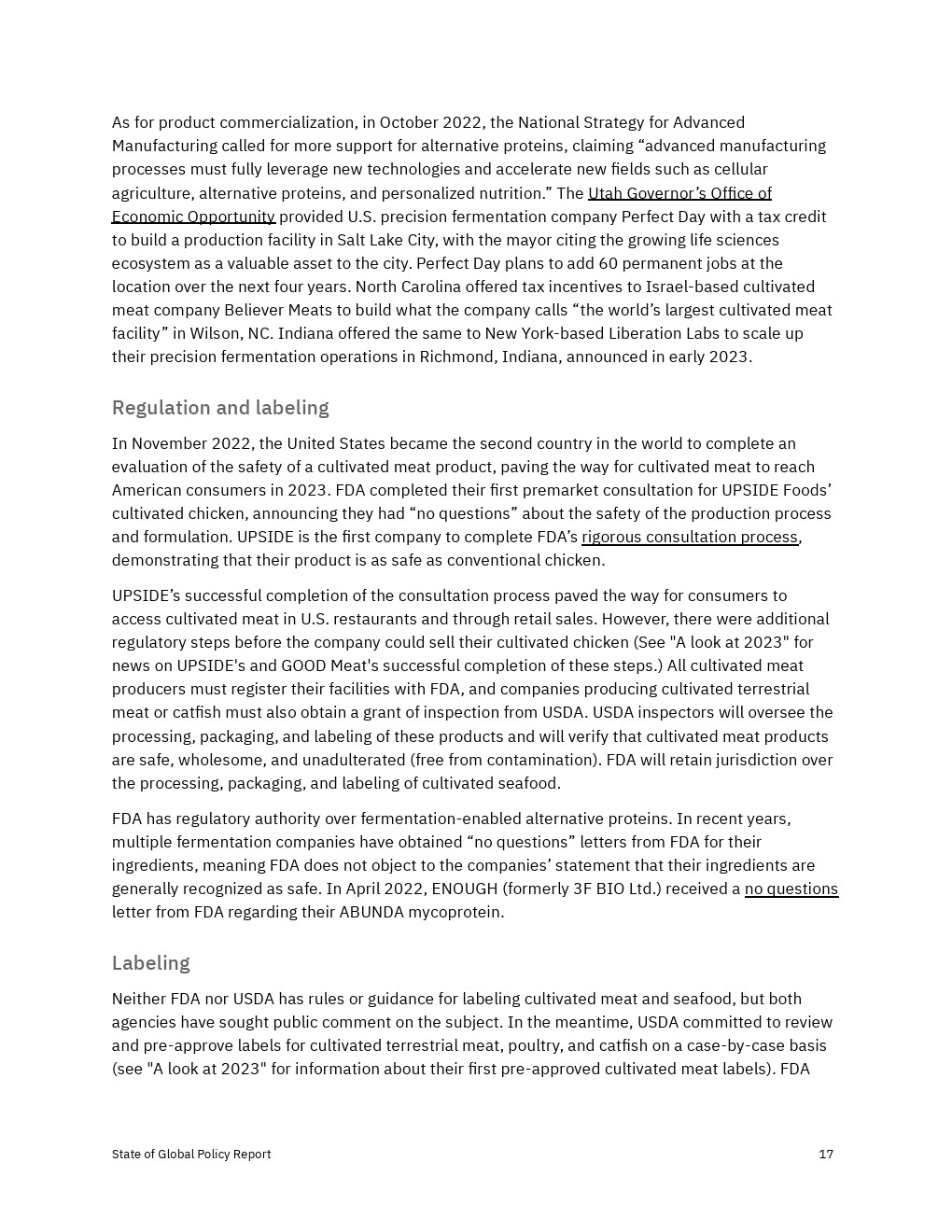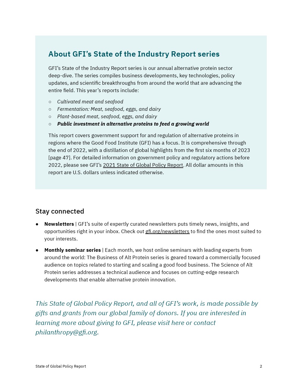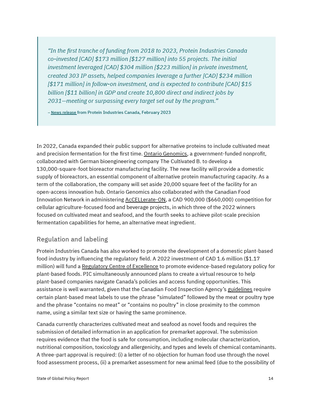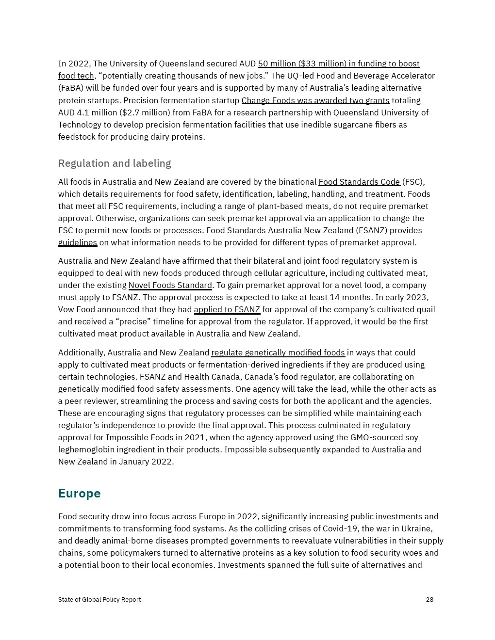 各国政府加大了对2022年替代蛋白质的财政、政治和监管支持,但还没有达到实现替代蛋白质对经济、气候和全球粮食系统的益处所需的水平。决策者应考虑增加对R&D和产品商业化的资助,以及监控工具,以确保蛋白质安全、公平和可靠地进入市场。