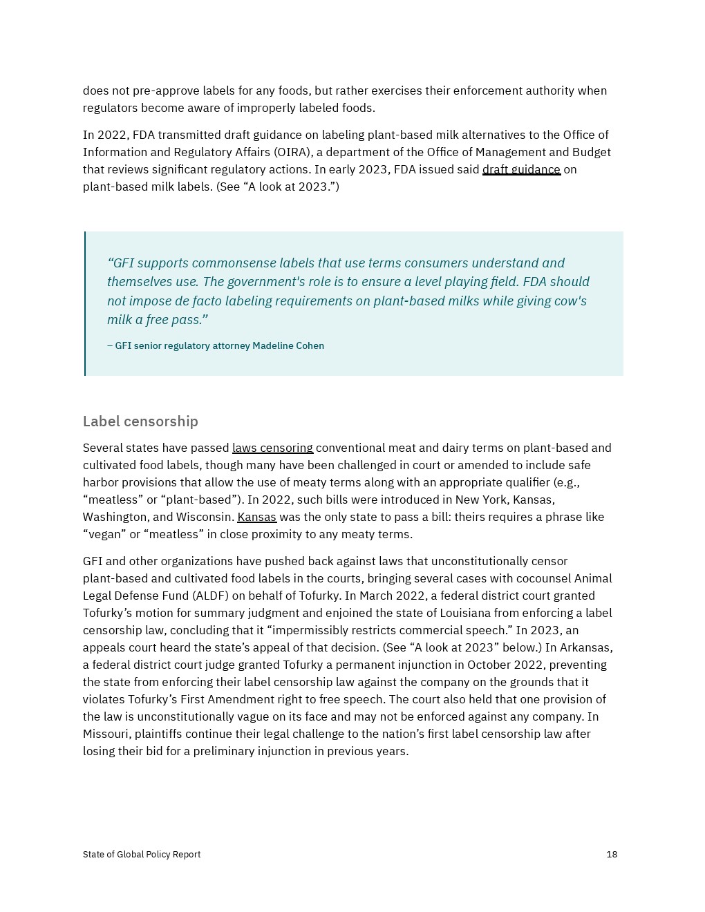 法院在很大程度上驳回、推翻或中止了通过标签限制替代蛋白销售的努力,尽管土耳其对蔬菜奶酪的禁令仍然有效。