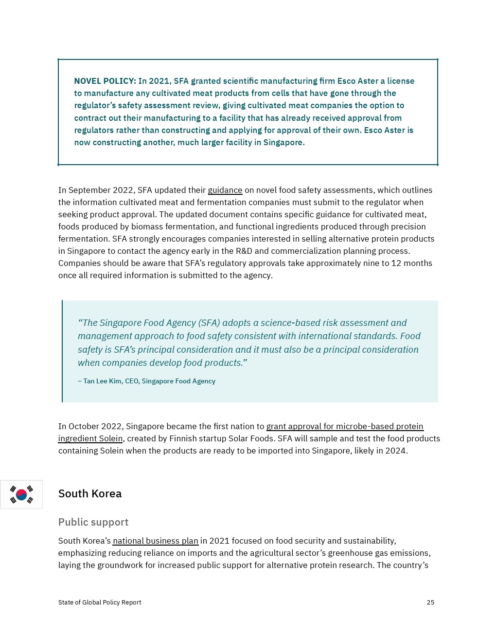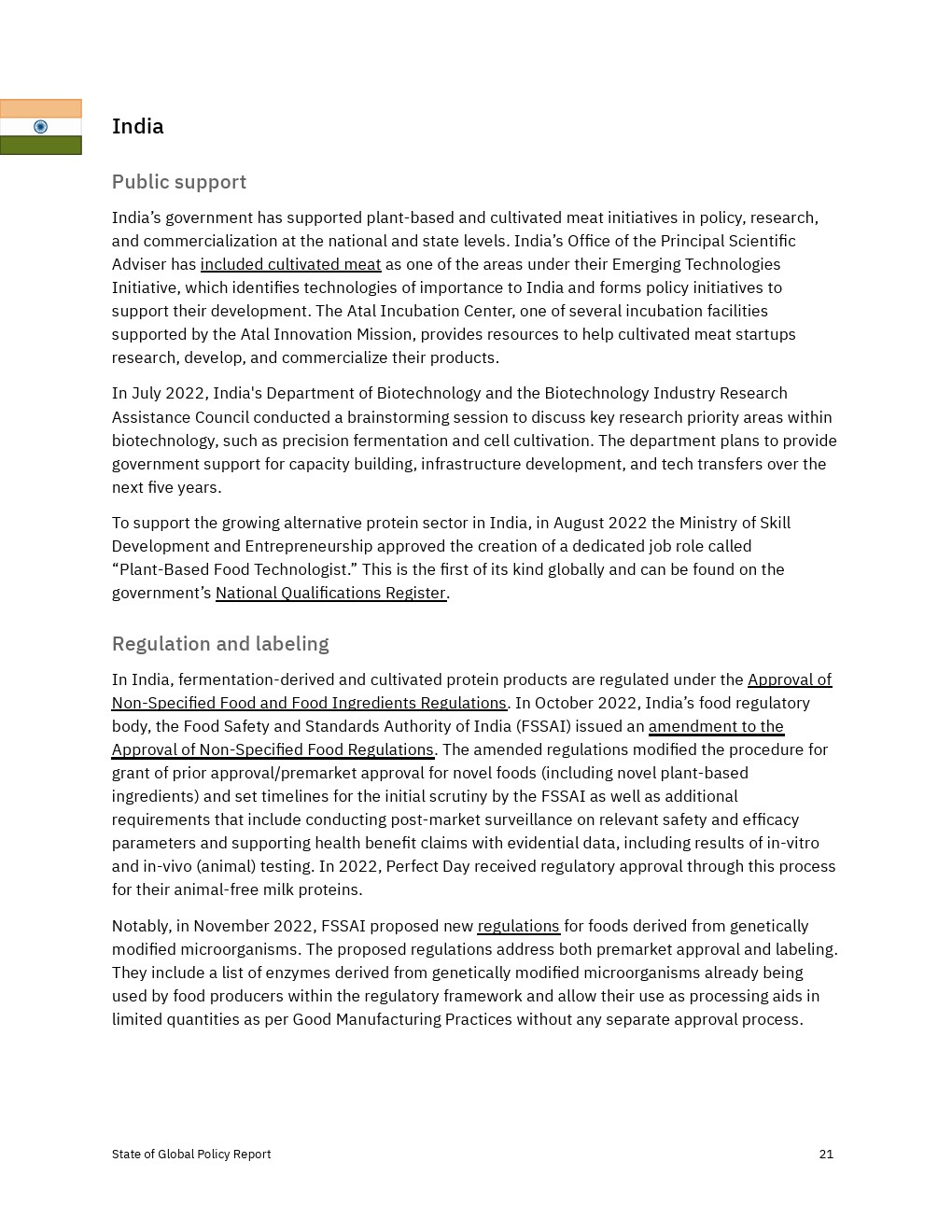 一些政府采取了一系列影响蛋白质替代的政策,包括澳大利亚、比利时、巴西、加拿大、中国、丹麦、芬兰、法国、德国、印度、爱尔兰、以色列、日本、荷兰、挪威、阿曼、卡塔尔、新加坡、韩国、西班牙、瑞典、瑞士、阿拉伯联合酋长国、英国和美国。