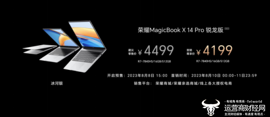 荣耀MagicBook X 14 Pro锐龙版R7-7840HS,16+512GB版售价4499元,首销专享价4199元;