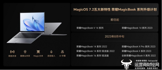 推出MagicOS 7.2五大新功能,升级智能互联网体验。