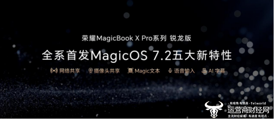 荣耀MagicBook X Pro系列锐龙版推出MagicOS 7.2智能互联新功能。在同一个荣耀账号下,开启蓝牙WLAN可以支持多台设备之间自动成环,带来网络共享和相机共享功能,以及在荣耀Magic Live智能引擎的技术加持下带来语音输入、魔文、AI字幕等新功能。