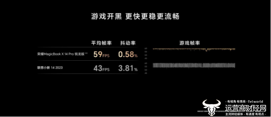 由于采用了新RDNA 3技术的AMD镭龙780M高性能核显示器,荣耀MagicBook X Pro系列锐龙版支持光线追踪,可以带来媲美的图像性能。以一款大型开放世界冒险游戏为例。用户在如日中天的时候,完全不用担心掉帧和卡顿。平均帧率达到58帧,抖动率仅为0.58%,带给用户流畅的娱乐体验。