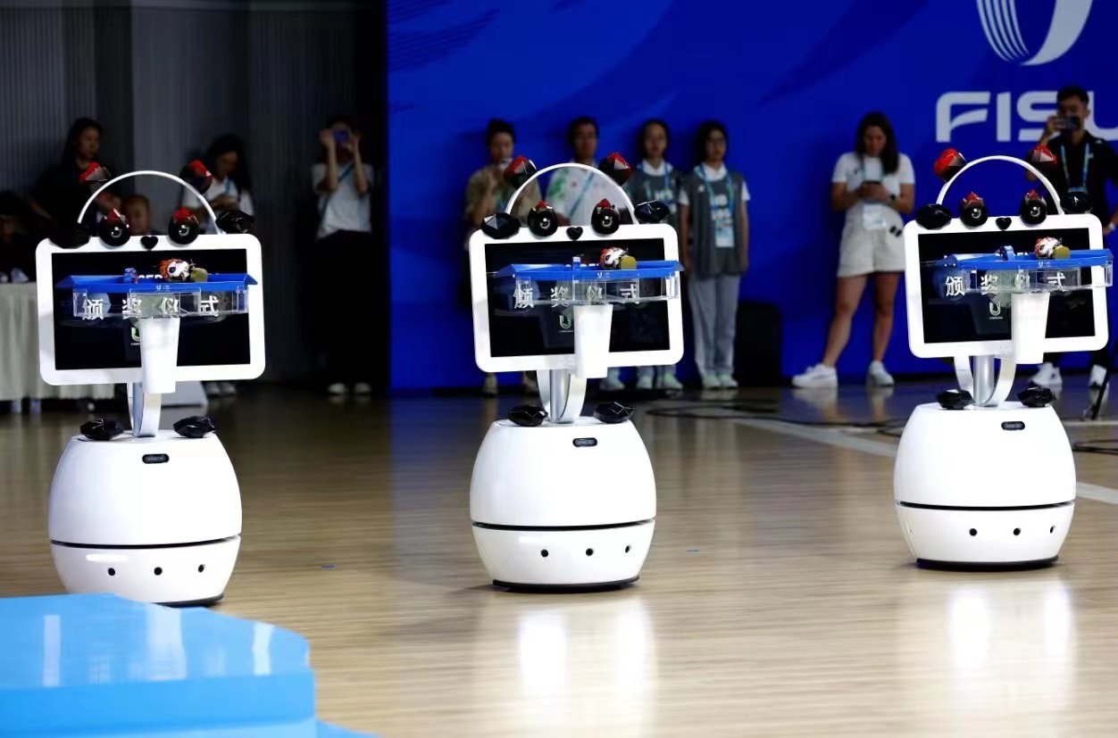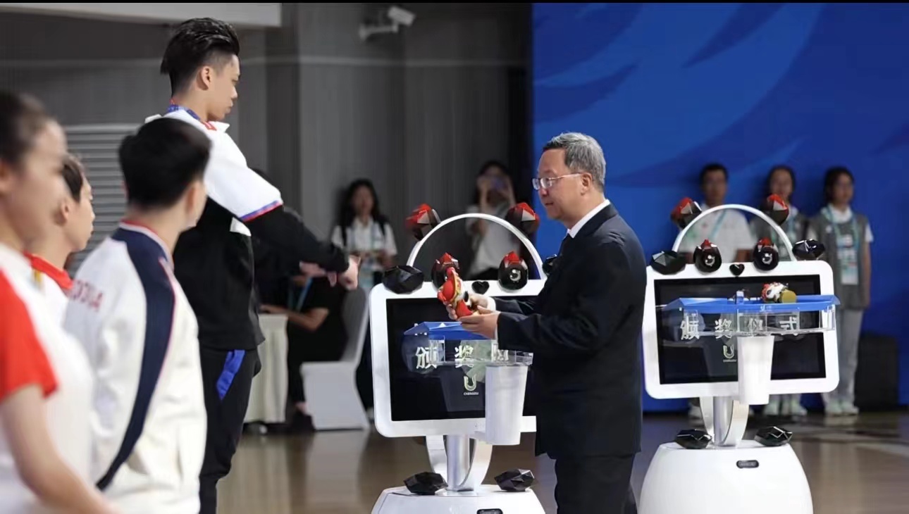 还记得大运会上特别的“托盘手”吗——“荣宝”机器人?7月29日下午,在成都城北体育馆举行的第31届世界大学生夏季运动会男子长拳比赛颁奖现场,几位特别的颁奖嘉宾“托盘手”入场,引起了众多观众的兴趣。这些“荣宝”机器人拥有与成都大运会吉祥物相同的可爱面孔,为获胜的运动员颁发奖牌,为充满活力和青春的大运会增添了智慧和科技的元素。