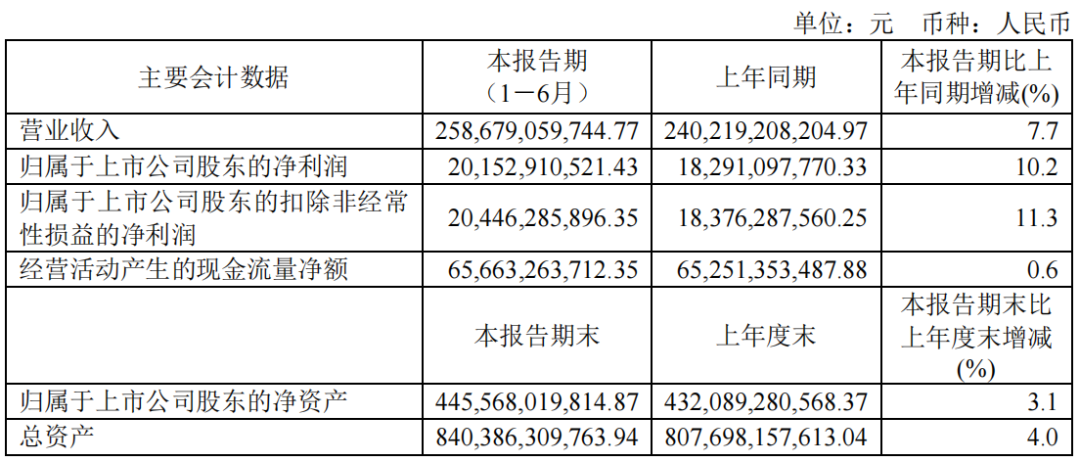 归属于上市公司股东的净利润202亿元,同比增长10.2%。归属于上市公司股东的扣除非经常性损益的净利润204亿元,同比增长11.3%,基本每股收益0.22元。资本支出为人民币416亿元。
