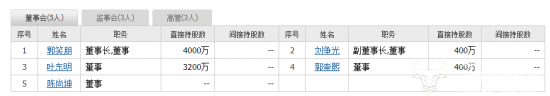 根据网上信息披露,刘伟光和郭崇禧董事一样,持有和邦史圣400万股股份。