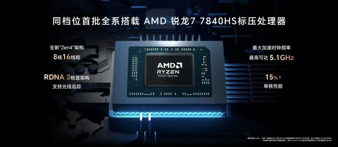 荣耀MagicBook X Pro系列锐龙版是首批搭载最新AMD锐龙7 7840HS标准压力处理器的同档轻薄本,性能卓越。芯片采用全新4nm制程工艺和Zen4架构,8核16线程,最高加速时钟频率可达5.1GHz,单核性能提升15%。在Photoshop和AE渲染导出大文件的场景下,仅需138秒和391秒,渲染导出速度相比竞品提升高达19%,大大提高了用户的工作和学习效率。