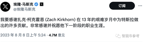 扎克随后在LinkedIn上对此做出回应,称他为自己过去13年的工作感到骄傲,并对特斯拉和马斯克表示感谢。