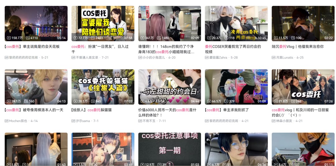在哔哩哔哩,cos已经委托制作了1200多个相关视频。