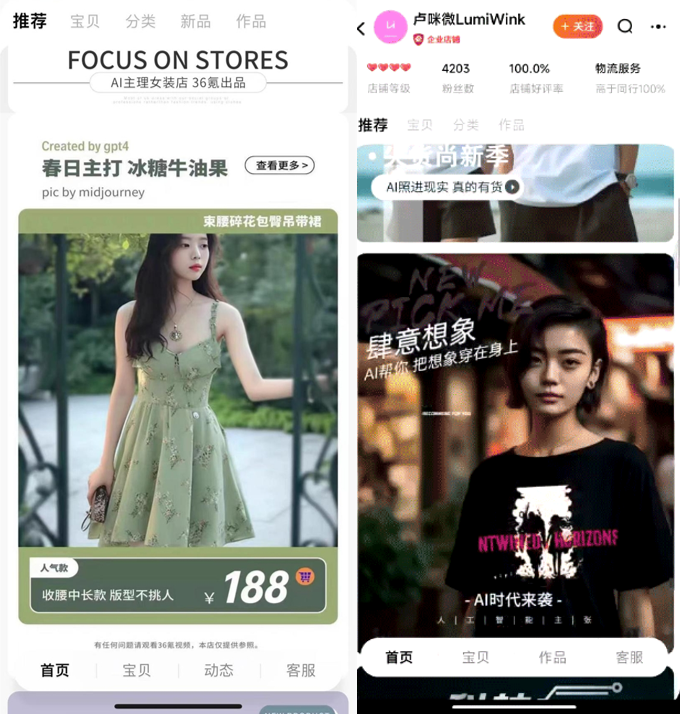 也有人在淘宝推出了自己的AI实验,也开启了未来新的商业想象。4月份,在AI工具的帮助下,几个年轻人在短短一两周内彻底实现了店铺的搭建和商品的上架。连“LumiWink”这个名字都是AI取的。