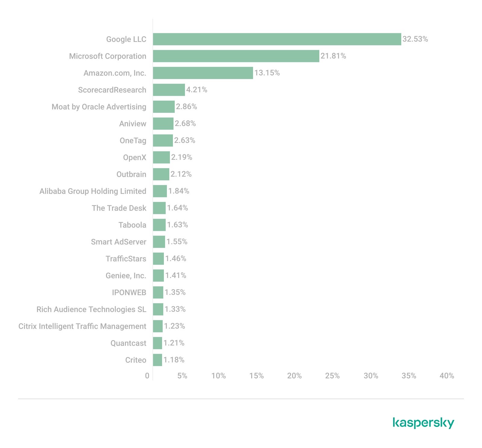 在我们最近关于网络跟踪器的报告中,卡巴斯基列出了网站和电子邮件中最常见的20种信标。大多数公司至少与数字广告和营销有关,包括谷歌、微软、亚马逊和甲骨文等科技巨头。