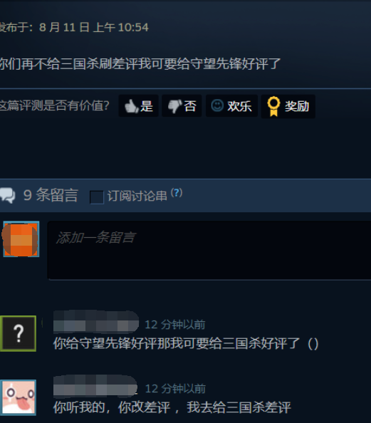 当然,既然进入了差评阶段,自然少不了“网络雇佣兵”和“三国杀”差评团的表演阶段——steam用户已经完全掌握了在差评名单上留名的最佳手段,成功将“三国杀”引入战局,为表达对暴雪的不满注入了非常关键的一波力量。