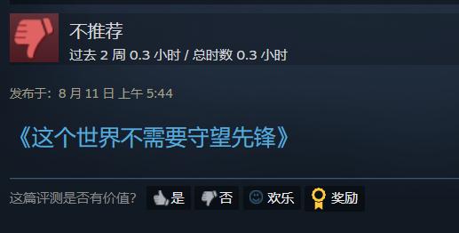 目前差评率已经超过《三国杀》海外玩家。主要的差评是PVE的价格与内容不符,而国内玩家在过去的几个月里计划在这里发泄他们的愤怒。除了对暴雪的反感,还有对鲍比·科迪克的人身攻击。最尴尬的是用充满激情的游戏logo语言来讽刺和烘托现状。