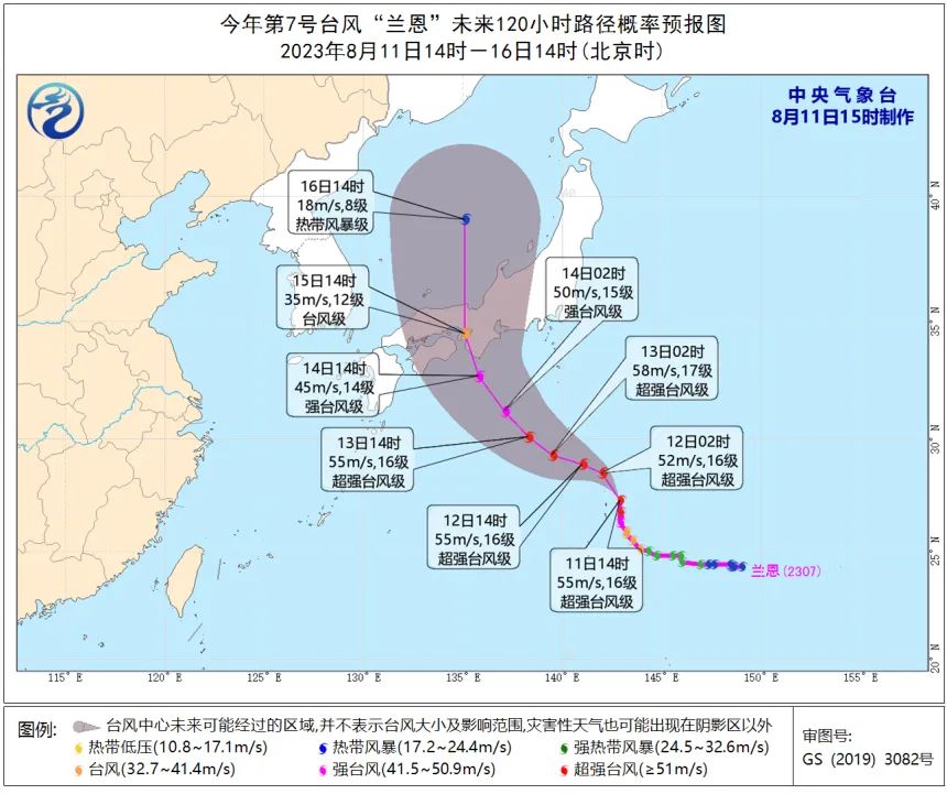 另外,今年第7号台风“兰”已于今天(11日)上午8时加强为超强台风级。据预测,“兰恩”将以每小时10-15公里的速度向偏北方向移动,强度逐渐加强,逐渐向日本南部沿海靠近。