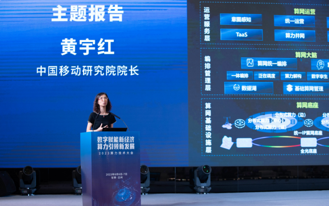 8月6日,以“数字赋能新经济,计算力引领新发展”为主题的2023计算技术大会在甘肃兰州召开。来自高校、科研院所、行业龙头企业的20多位院士、专家参会。中国移动研究院院长黄裕红受邀出席大会主论坛,并发表了题为《打造创新技术高地,推动计算网络深入发展》的演讲,分享了中国移动在计算网络技术创新方面的思考与实践。