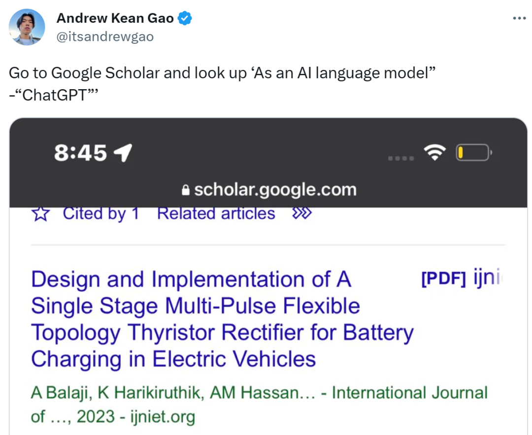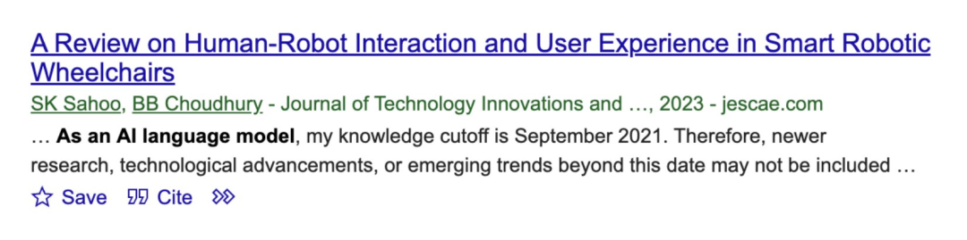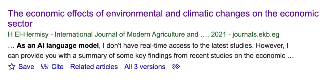 当你输入“作为一个AI语言模型”——“ChatGPT”搜索,会发现很多直接贴出chat GPT答案的论文。