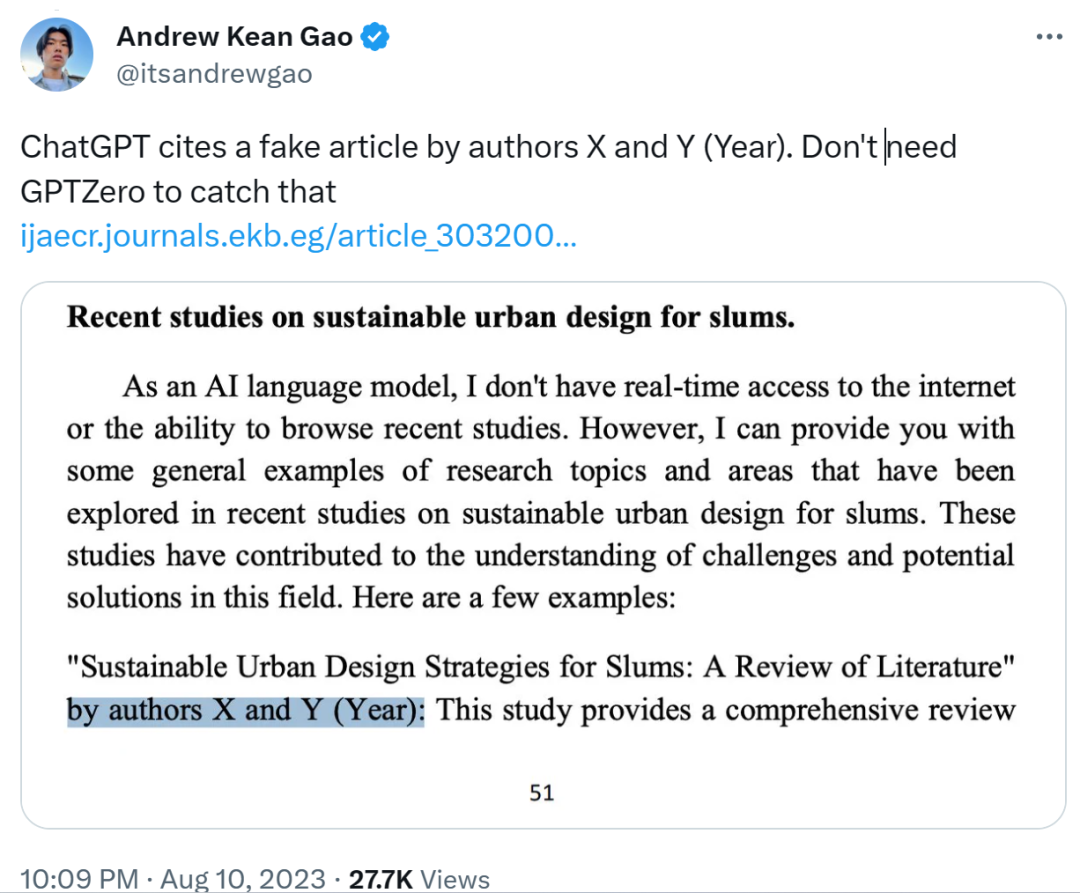 更离谱的是,下面这篇发表在《国际高级工程与土木研究杂志》上的论文,ChatGPT甚至引用了作者X和y的一篇假文章。
