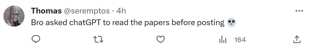 有人取笑这位斯坦福大学本科生的发现。你认为人们不会在发表论文前再通读一遍。有人又补了一刀,让ChatGPT再读一遍,才出版。