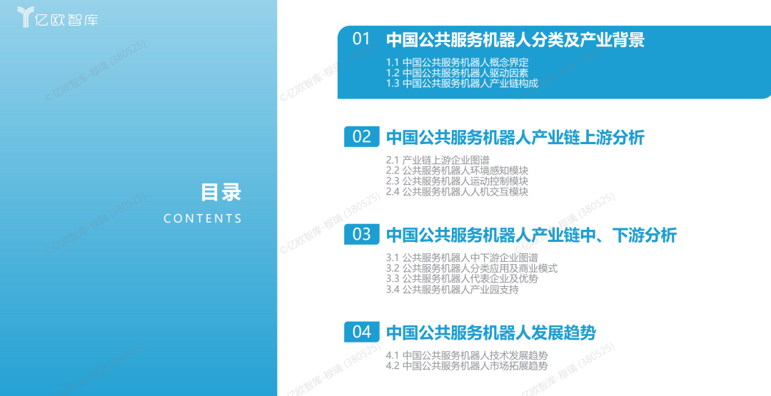 近日,亿欧智库发布了《2023年中国公共服务机器人产业链研究报告》,主要内容如下: