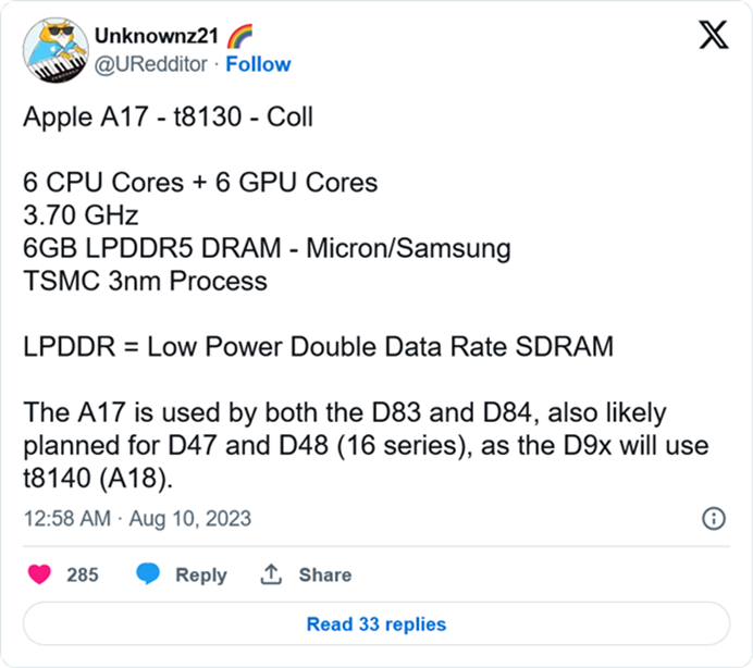 根据海外知名记者gourmain确认的最新信息,苹果秋季产品发布会将于今年9月12日举行,与去年一样提前录制,而全新的iPhone 15系列自然是大家关注的焦点。不出意外的话,这个系列还会继续推出iPhone 15、iPhone 15 Plus、iPhone 15 Pro、iPhone 15 Ultra四款机型,比之前更高,在芯片方面也会带来不同程度的升级,尤其是Pro版和Ultra。现在有了最新消息。近日,海外消息人士进一步带来了全新A17芯片的更多细节。